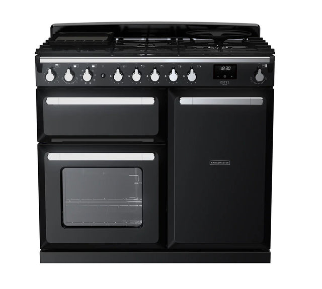 Rangemaster Estel Deluxe 100cm Dual Fuel Range Cooker - Black & Chrome | ESDL100DFPGBL/CM1