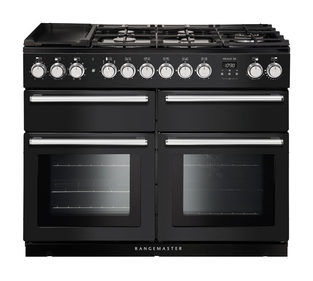 Rangemaster Nexus SE Dual Fuel Range Cooker – featuring triple oven cooking, deluxe multi-zoned gas hotplate and durable diamond-turned aluminium controls.