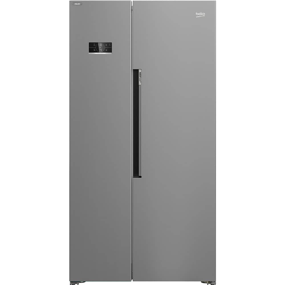 Beko American Style Fridge Freezer with NeoFrost™ Dual Cooling, Fast Freeze, LED display, and side LED lighting for optimal freshness and convenience.