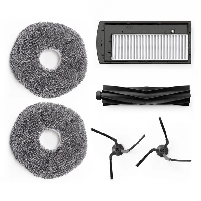The kit includes two side brushes, one rolling brush, two mopping cloths and one filter. Each component plays an important role in maintaining strong suction, effective debris pickup and efficient mopping performance across your floors.