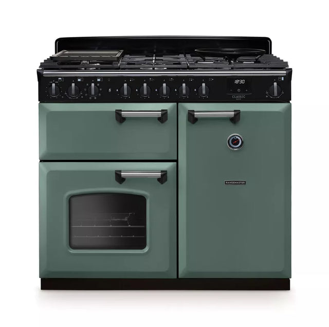Rangemaster Classic Deluxe 100cm Dual Fuel Range Cooker - Mineral Green & Chrome | CLDL100DFPMGR/CM1