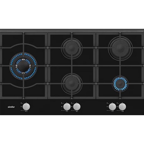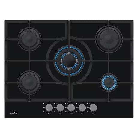 Simfer 70cm 5 Ring Gas Hob Black Glass SIMH7G