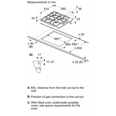 Bosch Series 4 60cm Gas Hob Brushed Steel PGP6B5B90