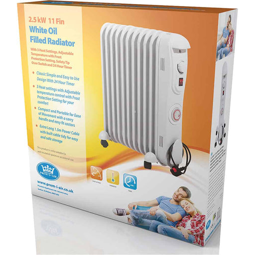Prem-I-Air 2.5 kW 11 Fin Oil Filled Radiator with 24 Hour Timer EH1846