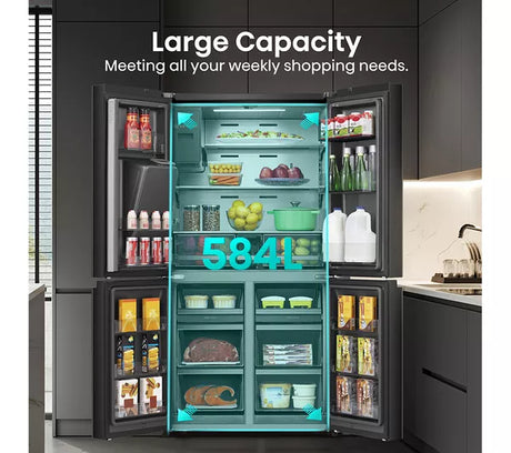 Hisense KitchenFit American Style Fridge Freezer - Black Glass | RQ768N4GBE