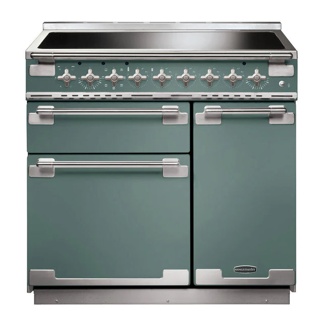Rangemaster Elise 90cm Induction Range Cooker - Mineral Green & Brushed Nickel | ELS90EIMG/ is backordered and will ship as soon as it is back in stock.