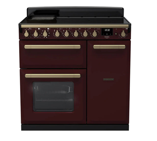 Rangemaster Estel 90cm Induction Range Cooker - Bordeaux & Brass | ESDL90EIPBOR/AB1