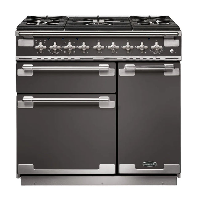Rangemaster Elise 90cm Dual Fuel Range Cooker - Slate & Brushed Nickel | ELS90DFFSL/
