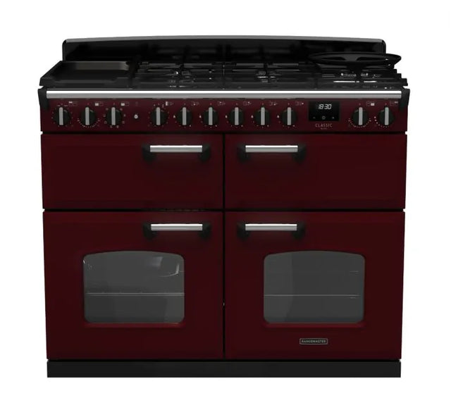 Rangemaster Classic Deluxe 110cm Dual Fuel Range Cooker (Slow Cook) - Bordeaux & Chrome | CLDLB110DFPBOR/CM1