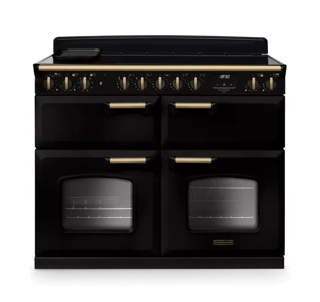 Rangemaster Classic Deluxe 110cm Induction Range Cooker (Slow Cook) - Gloss Black & Brass | CLDLB110EIPGBL/AB1