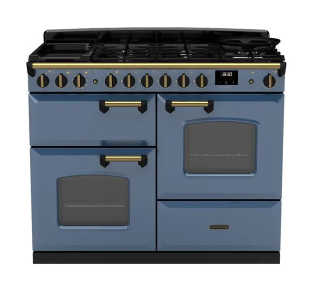 Rangemaster Classic Deluxe 110cm Dual Fuel Range Cooker - Stone Blue & Brass | CLDLO110DFPSTB/AB1