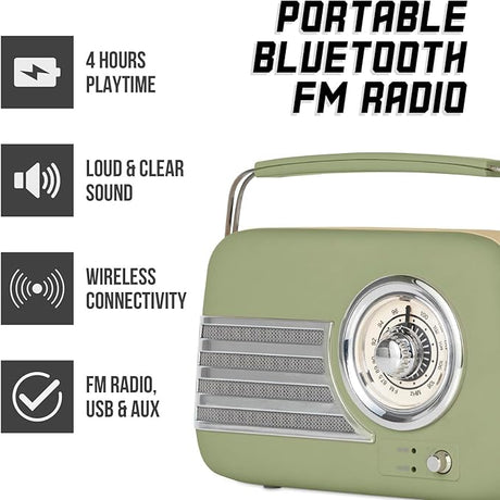iTek AM/FM Vintage Radio With Bluetooth Sage I60028SAG