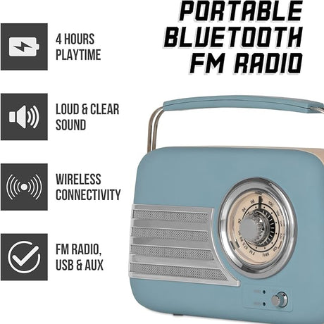 iTek AM/FM Vintage Radio With Bluetooth Blue I60028BLU
